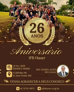 A Igreja Presbiteriana do Hauer convida toda a comunidade presbiteriana para celebrar seus 26 anos de organização, em cultos especiais de gratidão ao Senhor.