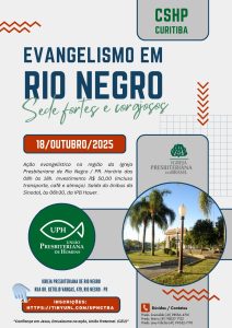 A CSHP – CONFEDERAÇÃO SINODAL DE HOMENS PRESBITERIANOS convidam todos os irmãos e irmãs para participarem de uma grande Ação Evangelística na região da Igreja Presbiteriana de Rio Negro, no Paraná. Este é um momento crucial para cumprirmos a Grande Comissão e levarmos a Palavra a uma nova região!