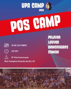 É o momento perfeito para reencontra a galera do UPACAMP, colocar o papo em dia e manter acesa a chama do que vivemos no acampamento.